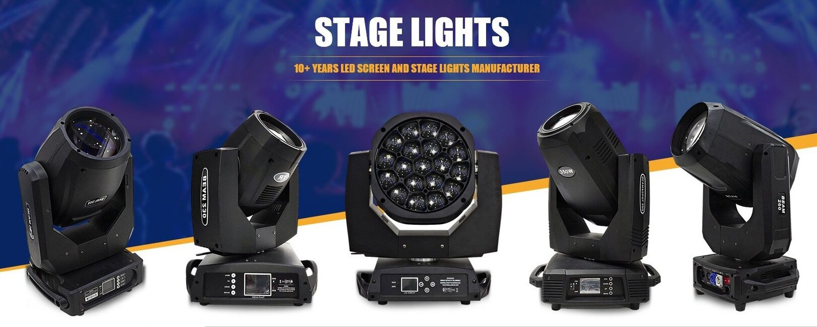 Precision moving head lights designed for dynamic stage effects.